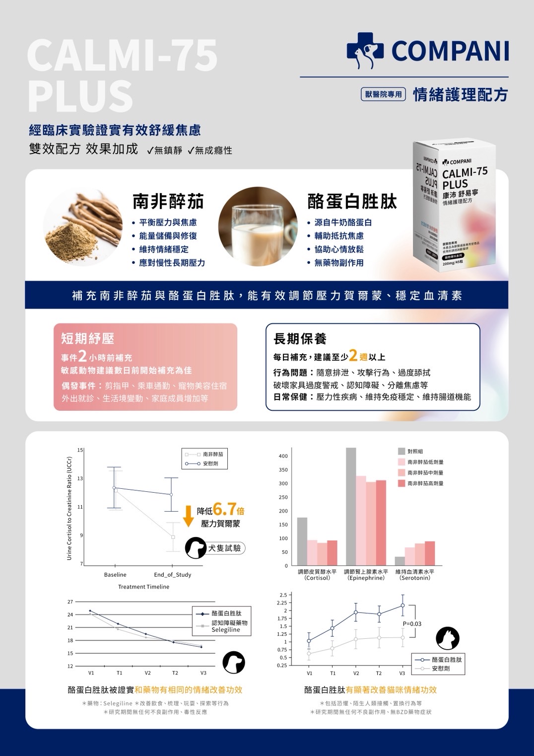 本產品為犬貓專用營養補充配方,設計以幫助寵物在環境變換、就醫、旅行、分離焦慮或其他短期壓力情境下維持較穩定的情緒表現,提升適應力與行為舒適度。 康沛全系列產品為 獸醫共同開發獸醫院專用營養品,如有購買需求,請詢問您的獸醫,並於合作獸醫院購買。