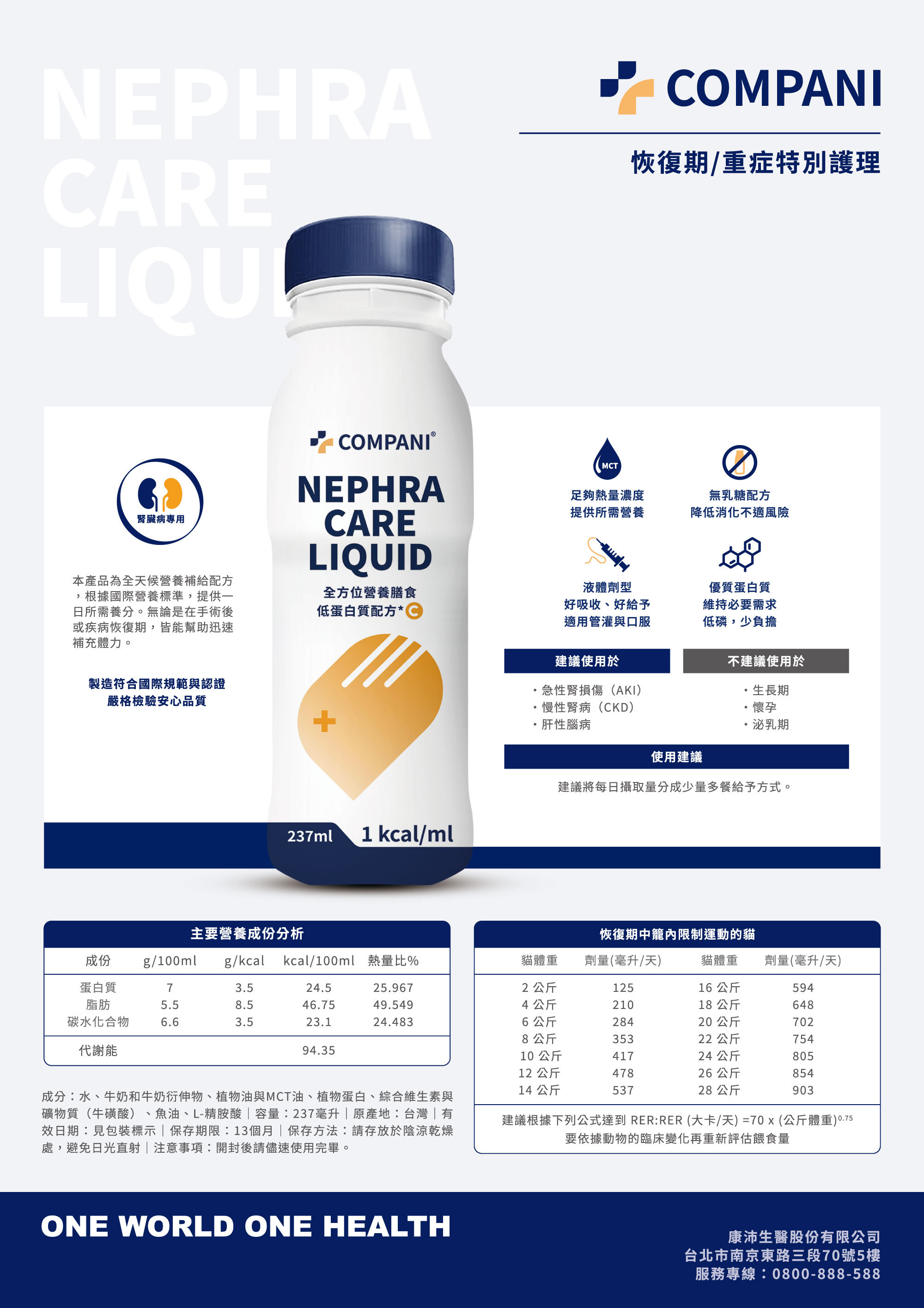 專為重症犬貓打造的液體營養配方,特別添加 MCT油,降低腸道負擔並快速轉換能量,